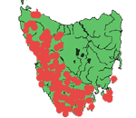 Anopterus glandulosus, commonly known as the Native Laurel is an endemic of Tasmania and is limited to the rainforest and wet eucalypt forest of Tasmania below 1200 m. As the distribution map shows they are found mostly in the south and west of the state.